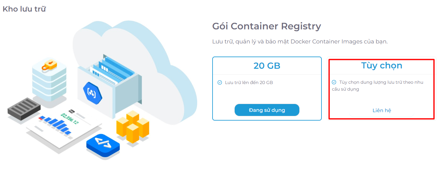 Tại đây sẽ hiển thị gói lưu trữ hiện tại, click vào ô tuỳ chọn để lựa chọn dung lượng lưu trữ theo nhu cầu của bạn