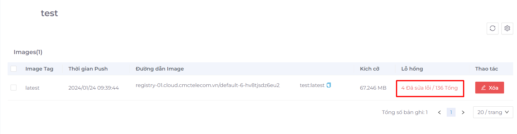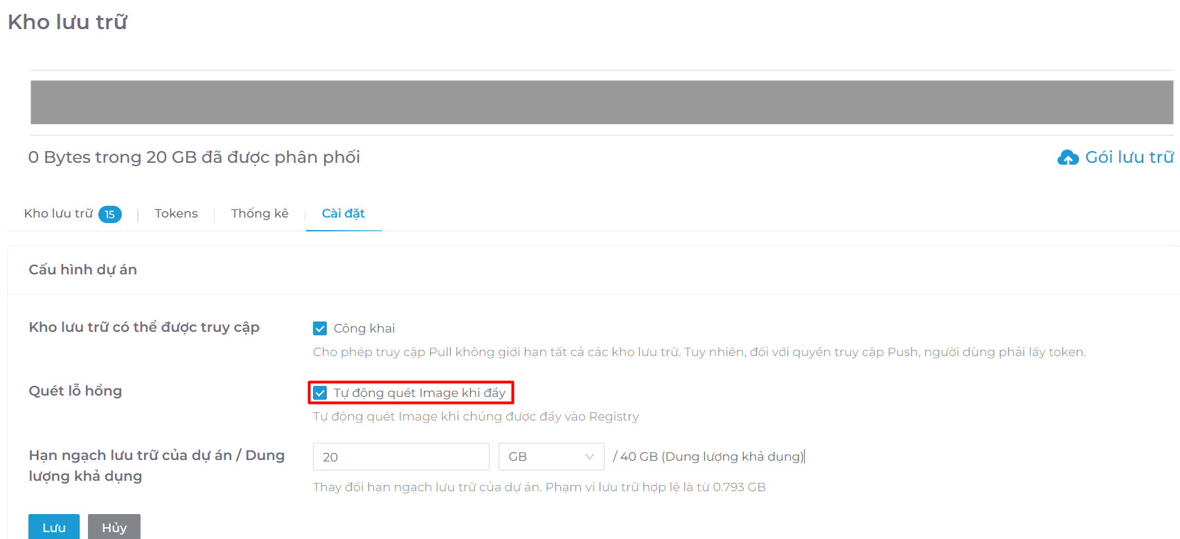 - Khi bật tự động quét lỗ hổng, các image sẽ được tự động quét trước khi được đẩy vào Registry