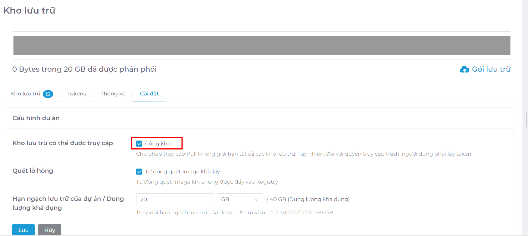- Để cho phép Pull không giới hạn tất cả các kho lưu trữ, người dùng cần chọn Công khai các kho lưu trữ