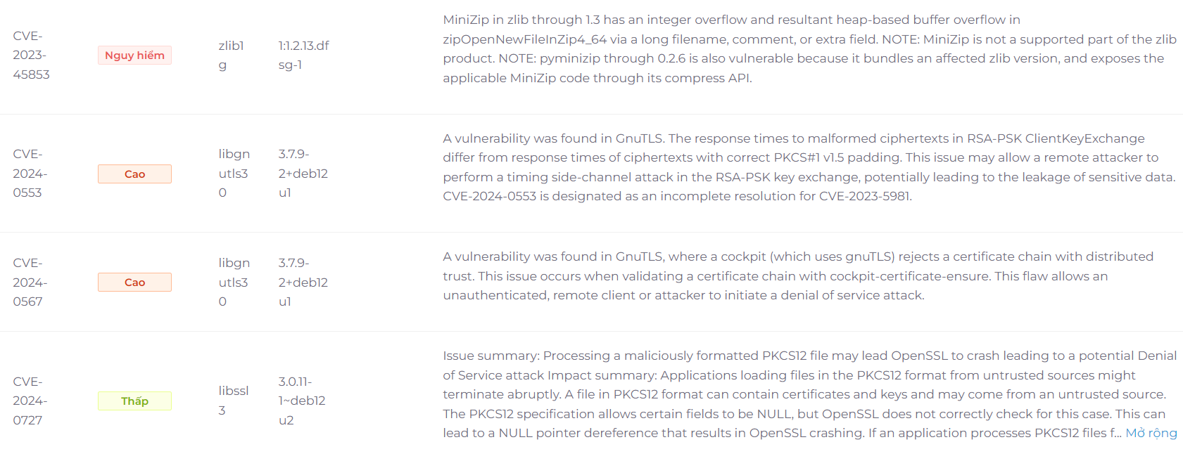 Sẽ có các thông tin chi tiết về loại lỗ hổng, mức độ nghiệm trọng và mô tả.