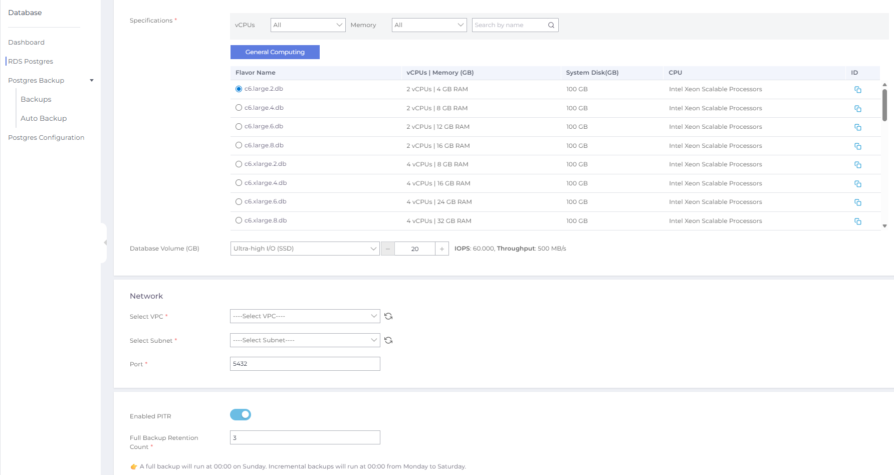 - Storage SSD của dịch vụ RDS Postgres được cung cấp IOPS 60.000 và throughput 500 MB/s: