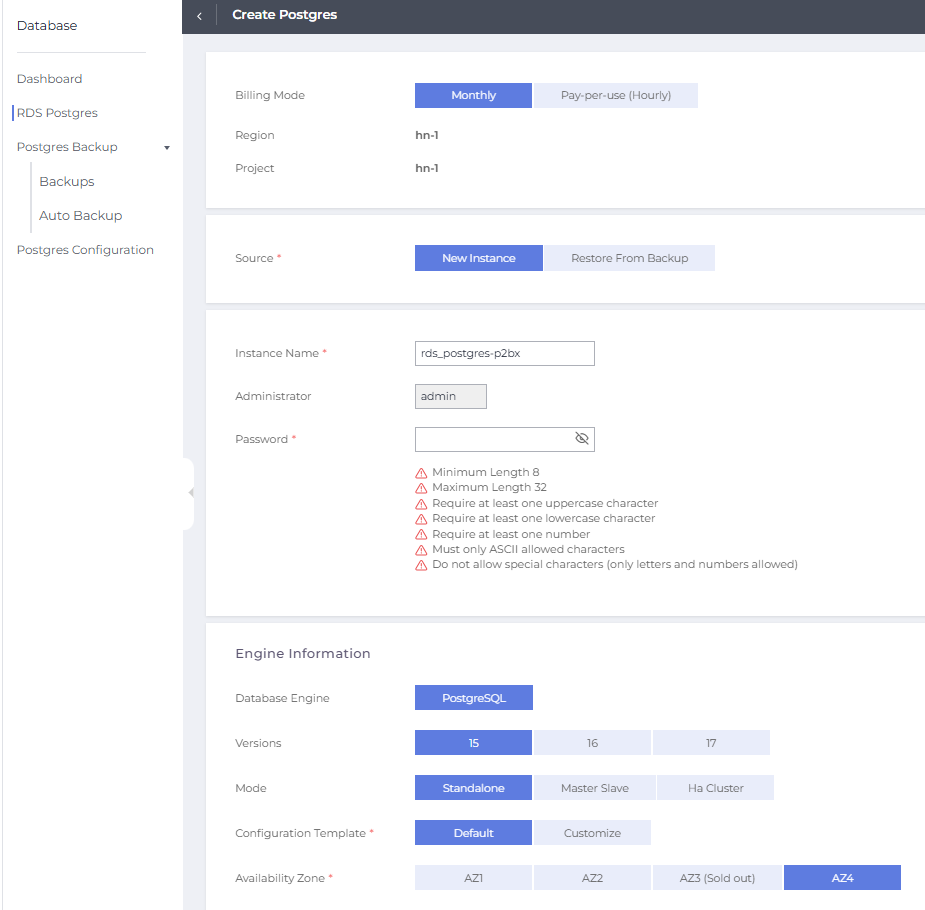 | Availability Zone | Vùng sẵn sàng: AZ1, AZ2, AZ3 và AZ4 |