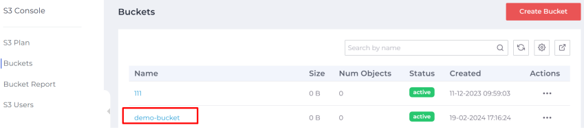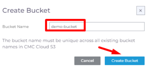 - Click BUCKETS ở menu bên trái, tiếp đó click Create Bucket